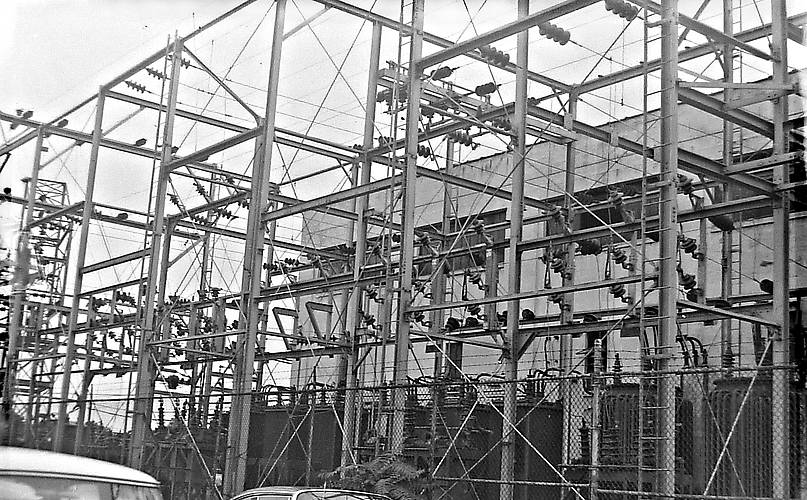 Installed in 1925 by the LIRR for their Babylon electrification, it used rotary converters to put out the 650vDC for the third rail. Taken down in 1969 and replaced by rectifiers when New York State bought the railroad from the Pennsylvania RR. 33kv from Nassau County came in to this, now the rectifier ubs use the LILCO (now LIPA) 13kv power. Photographed 1962. Westinghouse equipment was used. |
