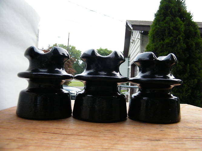 Picked up another ten insulators at a 7 day flea market being held over in Bouckville NY. Almost didn't go being the flea market was 150 miles west of where I live. If you follow my hunt and find postings you know I'm addicted to the hunt. That sums up the reason of why I ended up going the distance even if it was a risky business not knowing whether I would come home empty handed and waisting gallons of expensive gasoline. Anyway, The ten I will be showing off today came from 8 differnt vendors. Finding them took so much foot work my hips started to hurt. I'd still rather hunt along the tracks, but, what is an addict supposed to do if he can't get his fix that way any longer?? These three WT CD 216's came from the same seller. Two are mint and one very near that. To bad Whitall Tatum didn't make these root beer colored insulators a couple shades lighter. I'd guess they would be much more popular if so. As they are it is most difficult to get light to come through the glass. |