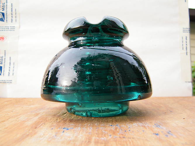 Walked away from the vendor who told me he didn't have any other insulators besides the Hemingray No.40 and Brookfield 152 on his table. As I was walking away he callled me back saying he did have another that was in his car. I followed over to his ride and he pulled out this very near mint No Name No.115 in a very dark teal aqua color. Of course I said I would buy it. It's even darker then the darkest Brookfield beehives that I have seen the color made in. This insulator was my last find of the day and by far the best find of my day. Picked up another ten insulators at a 7 day flea market being held over in Bouckville NY. Almost didn't go being the flea market was 150 miles west of where I live. If you follow my hunt and find postings you know I'm addicted to the hunt. That sums up the reason of why I ended up going the distance even if it was a risky business not knowing whether I would come home empty handed and waisting gallons of expensive gasoline. Anyway, The ten I will be showing off today came from 8 differnt vendors. Finding them took so much foot work my hips started to hurt. I'd still rather hunt along the tracks, but, what is an addict supposed to do if he can't get his fix that way any longer?? |