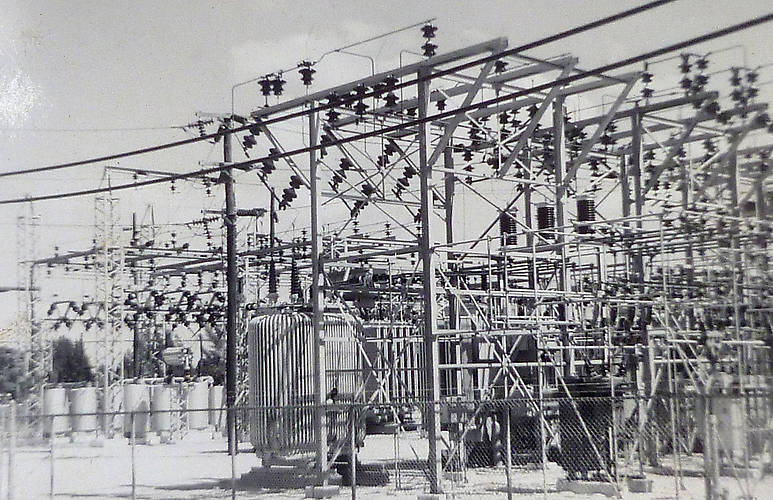 A 69kv to 4kv sub photographed in 1961. This shows the old style FP&L construction.