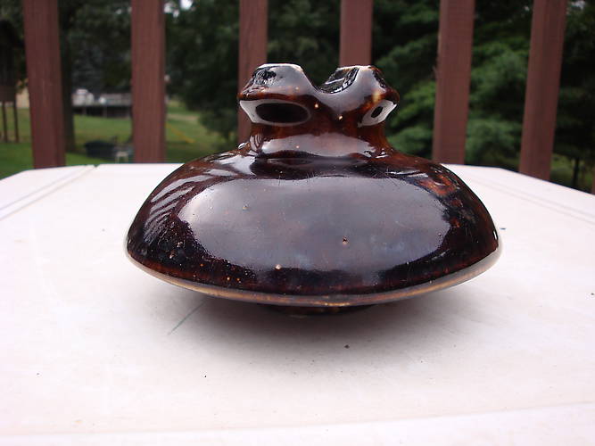 Found this mud in an antique store recently...measures 3 1/2 high by 5 1/2 in wide...Faint embossing, upside down, of what I think is" Fred M Locke". any info on this would be appreciated...ty Mike