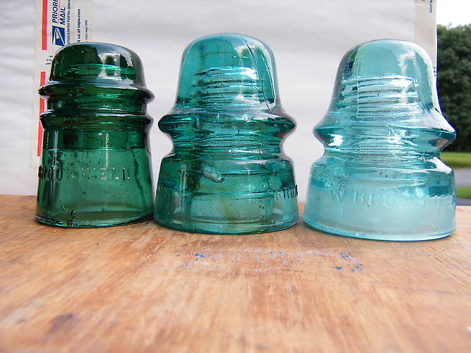 With the insulator questioning happening I placed the W. Brookfield CD 162.3 on the table and told the guy those on the table are the ones I already decided I would take. Didn't wnat him to get any ideas. Thought it was a 162 until I was on the road headed home realizing it wasn't. The 162.1 has a stone, some amber, fizz and bubbles. The toll is just a nice color emerald green. Nothing all that special found on this hunt but it's good just to get out there. |