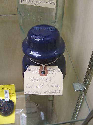 I Came across this insulator on my recent Pennsylvania trip a week ago that I forgot to post. Here is a real nice U-292 Thomas in cobalt blue. I had to do a double take on what they were asking for a price $175.00. Took a photo of it then shook my head. I don't see this one moving for a long time. |