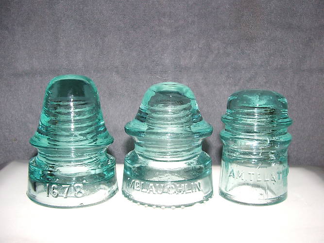 Found some nice insulators over this past weekend. CD 287 Locke No. 15, CD 164 McLaughlin, CD 121 Am Tel & Tel. This CD 121 is a shorter version of the CD 121.
