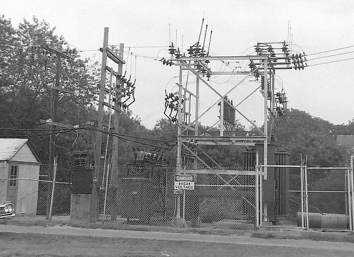 This 23kv to 4kv sub has some very old stuff in it: Pyrex glass, old metering transformer, etc. Taken early 1960s.