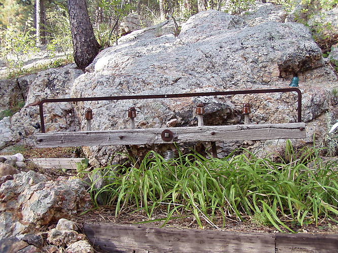 Found this as pictured. The insulators are more U-4 style insulators. Like the Fossil line insulators which were posted a couple of months ago, these are very crudely made, and it seems that no two are the same color.