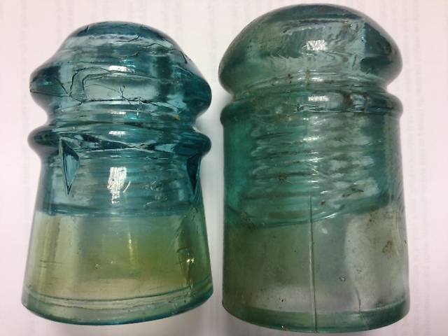first quick post. 2 pulled from 2 boxes i kept. 45 total. the 127 is MLOD, the 106.3 is a duquesne product i believe. the 127 i think is brookfield product. i see a 'feb 22-70' on dome. other embossing i can't read. amongst all those insulators was nary a hemi 106. so sad. |
