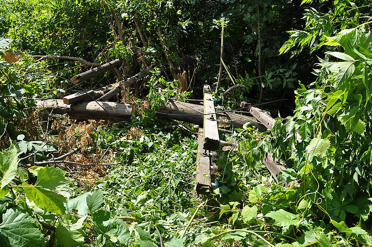 This was from last August and near a Guelph, Ontario residential area. We had a lot of tree damage early this year due to storms and many had to be cut down including this pole that had a bad lean to it. I was going for a walk down the CNR and saw it lying there and was able to pick one mint GNW TEL CD 145 (not shown) and left the rest of the common insulators for other collectors to take. |