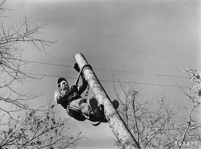 Probably routine everyday stuff going on for this chap in this photo. But wouldn't it be fun for some of us in this digital, wireless age to work on telephone open wire as we see here?