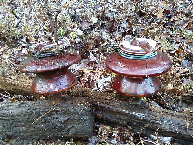 The insulators would not come off the pins. The whole pin would turn so I took my hatchet and split the cross arm to release them carefully.