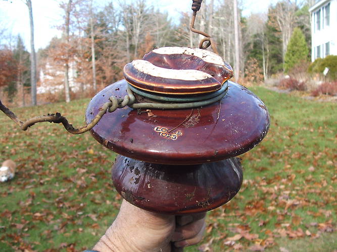 Here is a close up of a M-2145 Locke 1023. It has not been washed, and I will leave the tie wires on these three for display in my insulator room.
