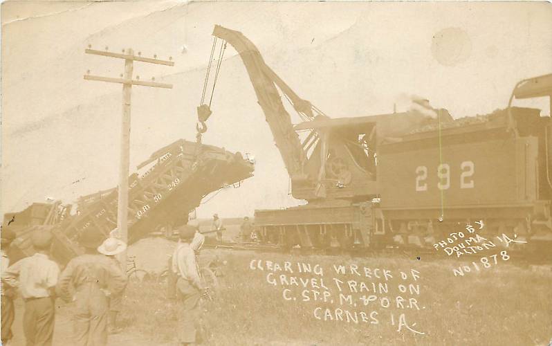 Oddly the vast majority of the train wreck photos of yesteryears (like this one) that I have seen show the pararelling telegraph pole lines unscathed. No matter how bad the incident was, the telegraph poles and wires seemed to remain intact. That is great since information regarding such unfortunate incidents got transmitted quickly, saving property and lives. |