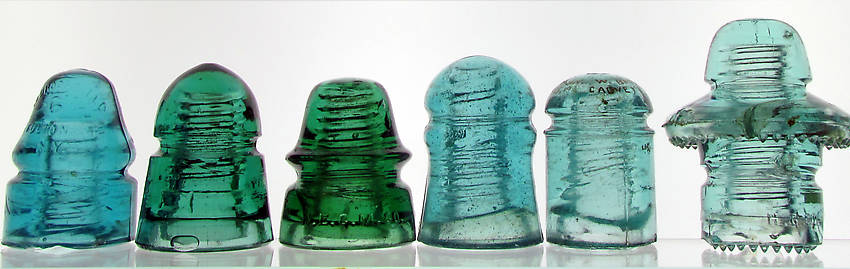 Last, but not least a few of the neat pieces I purchased at the Dennis McHenry Auction. A real pretty blue 133Brookfield, A nice green aqua pointy dome Star with bubble, a green NEGM signal, a snowy blob top, a tough [010] Brookfield CD 127, and a HG CO transposition that is 3/4" shorter than any other I have. Other than the transposition, all are very near mint. |