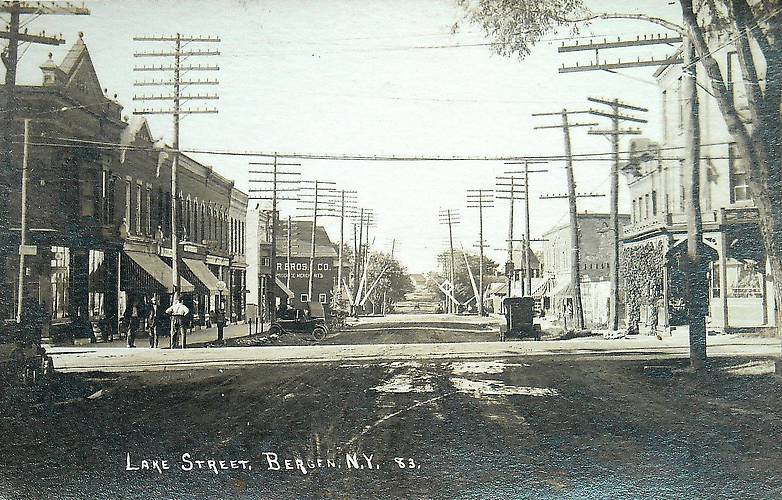 Bergen, NY c.1905, Plenty of Openwire Utility Poles, Lines