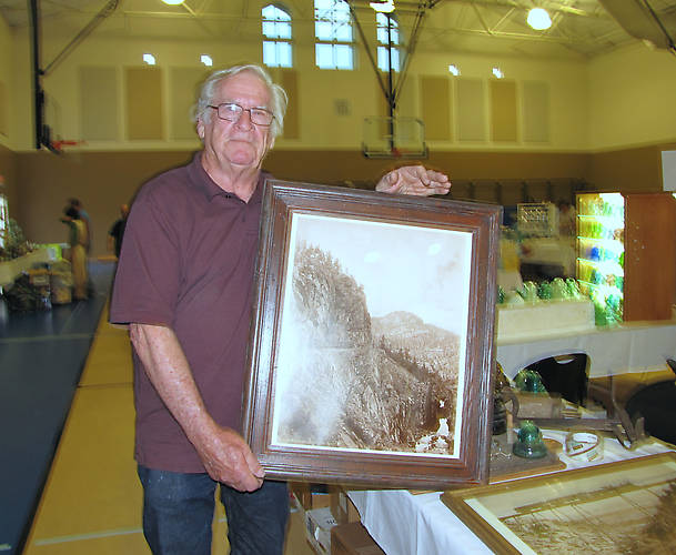 Denny Hackthorne holds one of two William Jackson Colorado Rail rail scene prints available at the show