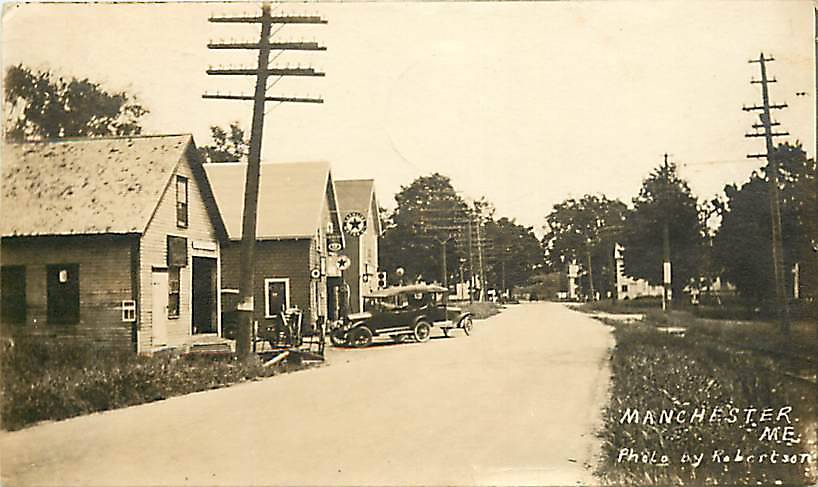 Manchester, ME c.1925, Village Centre, Pole Lines, Old Cars