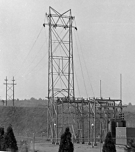 This JCP&L sub has a tower to bring the 34.5kv lines over the highway. 1960s photo.