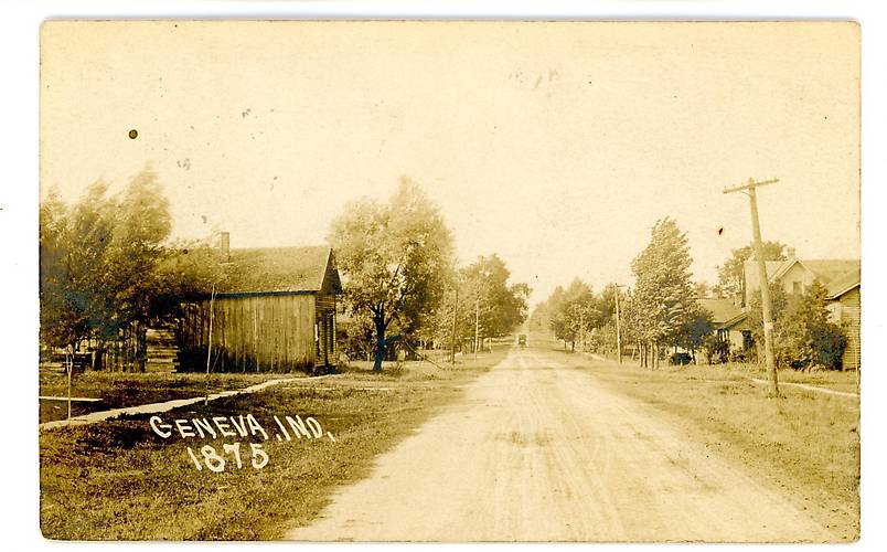 Although this photo has 1875 written onto it, this country road image in Indiana most likely was taken in the teens. The forementioned number probably was for photographic reference indexing or an outright time-stamp error by the person who wrote on this picture.... Nice single crossarm-bracket construction here mounted upon "cone top" shaped poles ;-) |