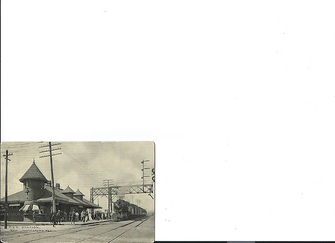 A post card showing the original station, demolished years ago. Great shot showing the pole lines, signal tower, DC light and walkup ticket counter