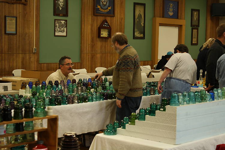 Chip McElwee seated with Bill and Jill Meier searching for Hemingray's they don't have...now that is a tough thing to come up with, a Hemingray that Bill and Jill DON'T have!