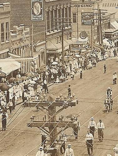 Within view (top crossarm on the right) is an early porcelain cutout. These had wire-type fuses inside them to protect transformers and other circuits. They also provided a means of disconnecting such apparatus and lines for servicing. These were made for years. Generally they were brown porcelain. White ones are known and probably are the earliest commencing in the 1890s. A male porcelain plug inserted into the base with a piece of "fuse wire" looped onto the (internal) end of it. Once inserted, the transformer, line or whatever else that was connected to the load side of it was instantly energized. These cutouts were long known by electric utility linemen as "widow-makers". Upon insertion if there was a transformer short-circuit or other electrical fault there was a promised blast of at *least* 1,100 volts off the primary it connected to that surely would take permanently care of your hand if it was unprotected ... if you survived. Stuff you really wouldn't want to fool with on a Friday the 13th or if you had a hard night before. Improved, *somewhat* safer disconnecting switches made of porcelain were introduced in the 1930s. These were of the "box" type as well as an open design. The latter are similar to those used today...made of porcelain with the fuseholder on a hinge. A long fiberglass "switch stick" by the lineworker safely operates both types of cutouts. |