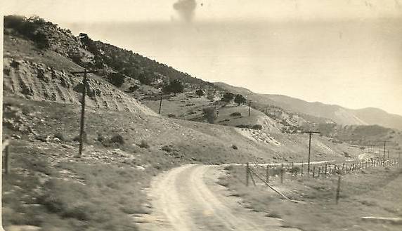 Possibly a highway or railroad track pararelled this dusty road up on the left with an openwire line of some sort following it through the New Mexico hills....