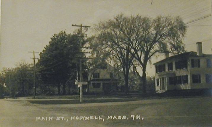 These circuits connected Rockland and Scituate, MA with Ma Bell long distance service along what is now known as SR 123. About 1930 lead-sheathed paired overhead and some underground cables superceded this line, around approximately 15 miles in length. Scituate is on the coast and Rockland is approximately the same distance inland. Local electric distribution circuits are also seen here atop this pole line. The electricity supplier was either the Brockton Edison Company or The Electric Light and Power Company of Abington and Rockland. This photo was taken looking East from Norwell Center. This community is about 25 miles SE of Boston is full of historic homes and history. |