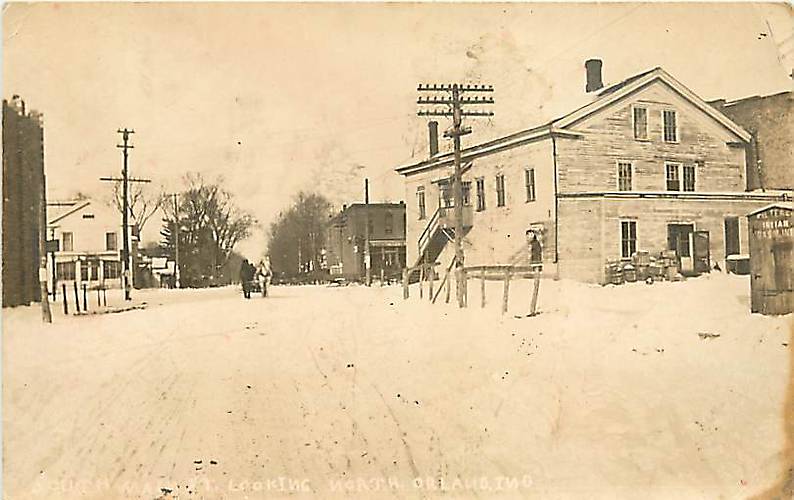 Orland, IN c.1910 Village, Telephone Junction Pole, Snow