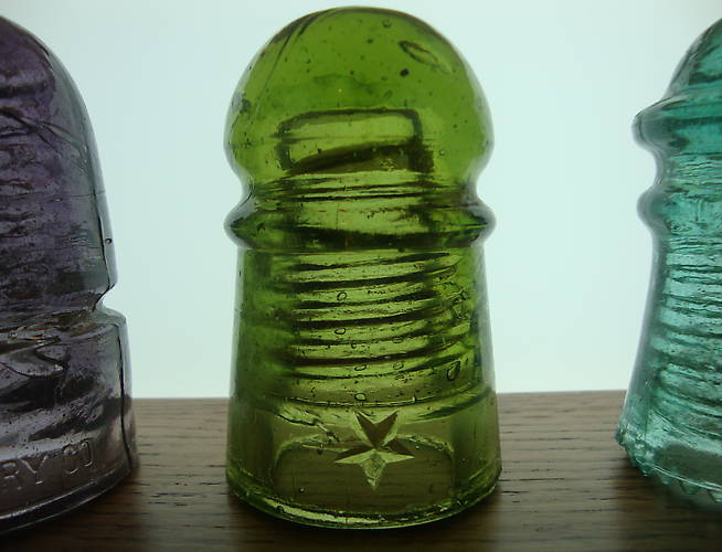 I had a customer come into my place of work with a box of insulators that he saved from a barn that was being torn down. They were all common openwire telephone stuff, except the weird green colored one. Oddly enough this piece was found in Bothell, Washington. ( my old huntin' grounds) |