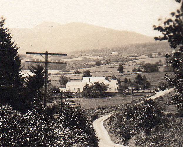 Scenic view of glass insulators shining in the sunlight upon the circuits they carried supported led to this Maine hillside village in the background just about 100 years ago.