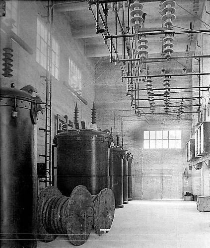 Interior view with 69kv transformers & switchgear. SCE Collection,1915.