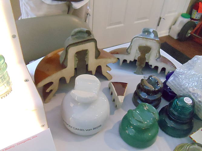 Some of Dale Glendenning's recent find. Cut cross sections of some Ohio Brass Porcelain Pieces. at the 15th Annual Winterfest - Jan 18 2014