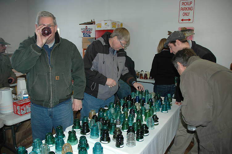 Here's Russ Frank with one of Dave Shaw's insulators. Russ is apparently trying to show us that he "nose" all about insulators!