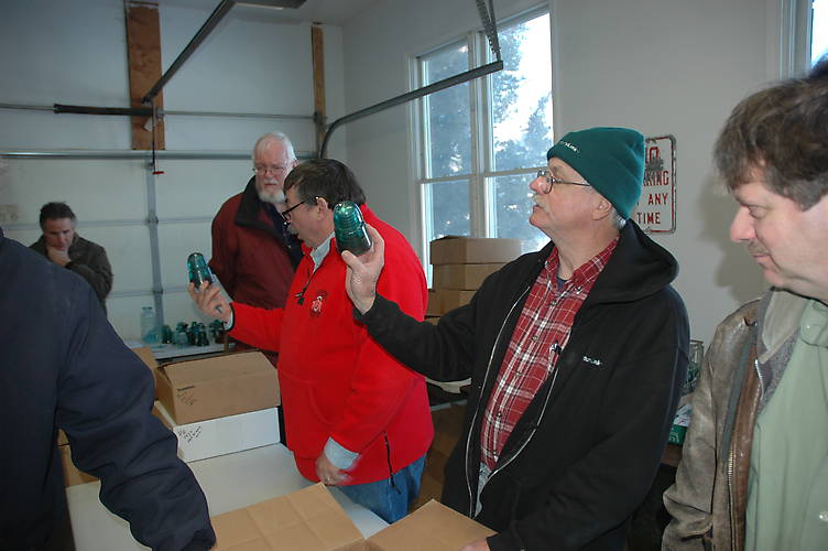 I believe that this was the last box in the auction. It was a full box with a lot of beehives. Rick wanted one of them because it had an interesting mottled surface. He sold me the rest of the box. Like I need more Hemi blue insulators.