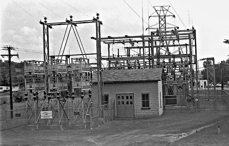 CHE&G sub showing 69kv cap bank. Now replaced with new sub half mile away. Early 1980s photo.