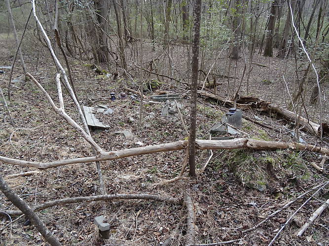 The main portion of the dump was a solid hill of stone, German furnace brick, and early porcelain. Insulators found in the dump include: M-3250 Swaninigan in yellow and drippy yellow glazes used on Westinghouse switch assemblies. M-2421 Thomas in drippy red glazes. M-3471 Thomas in Dark Brown from the 50kV transmission lines. Early white wall tubes/transformer bushings. These were found mounted in wood mounts with stone racks. This might be part of the eletric arc process. OB brown transformer bushings. Special white firebrick from Germany from the furances to withstand thousands of degrees. There was very interesting limestone brick from the absorbsion tower. Imported from Germany, the brick has minerals that absorb the nitrogen (or something like that) creating Nitrates. Most of the birck had a stained orange coloring from the absorbsion!!! Stone racking from seperators for the electric arc. There was also plenty of odd Victor porcelain and even a 4 1/3 diameter cleat! |