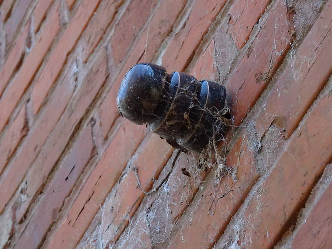 Exchange insulator made by OB on the side of the transformer house. Unfortinately, it was cemented on a metal rod in the brickwork.