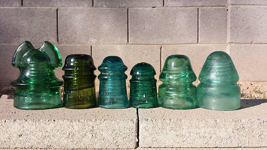 I picked up these insulators at a yard sale on Sunday. The lady said they were her Grandfather's insulators. From right to left: a CD 132 one liner, a CD 133.1 in a lite green, a CD 102 star in teal green (This is the first one that I ever seen in this color)., a CD 106 Hemingray in lite cornflower blue (The blue is a lot better than the picture shows)., a CD 121 AT&T Co in a beautiful olive green, the last one is a CD 260 star in a very nice yellow green. |