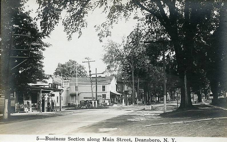 Deansboro, NY c1930, Utility Pole Lines, Gas Station, Stores