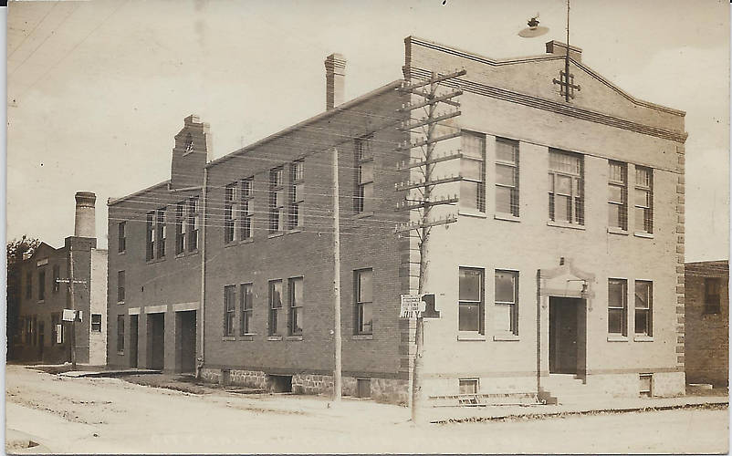 In addition, here we have a very good looking 8-crossarm pole with 10-pins upon each along with a spanwire radial wave incandescent street light that once illuminated this Minnesota community's intersection ;-)