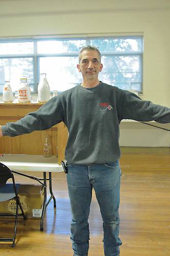 Mark Corriero studying dealer's tables for a new addition to the collection and having a great time. Mark and Elaine drove down from Chicago.