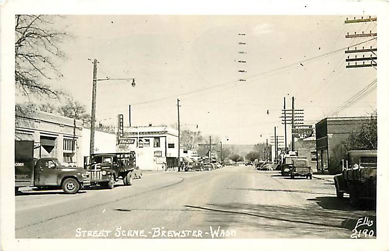 Brewster, WA c.1950, Downtown, Utility Poles, Street Lights
