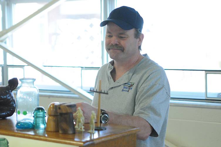 Mark Gilmore and his sales table. Mark is the coordinator of this years Springfield Ohio communifty display featuring Diamond P insulators.