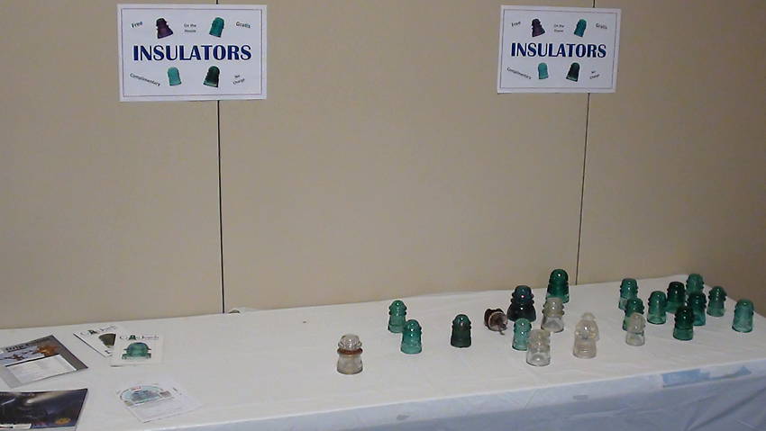 Freebie Table with Am Tel & Tel Co embossed Tolls and a nice plastic porter insulator. There were some $10 insulators here including a cobalt blue porcelain.