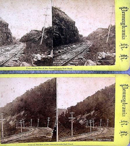From the appearance of the originals under-crossarm "ramshorn" insulators were used along these stretches of the PRR. Exact locations unknown.