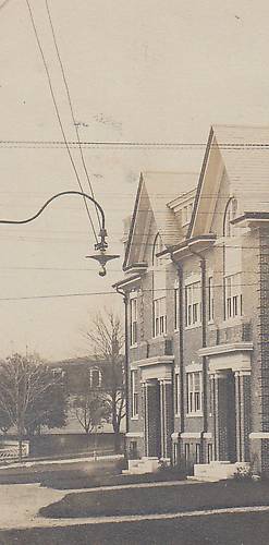 This fixture dates to around 1900. Two glass insulators were mounted on a cast iron bracket on the end of the pipe-arm just above the fixture head for terminating the lead-down wires. A coupling electrically insulating the fixture from the gooseneck bracket is also seen (above the fixture). Sometimes a CD 280 glass insulator or its equivalent was used for the same purpose through the years. |