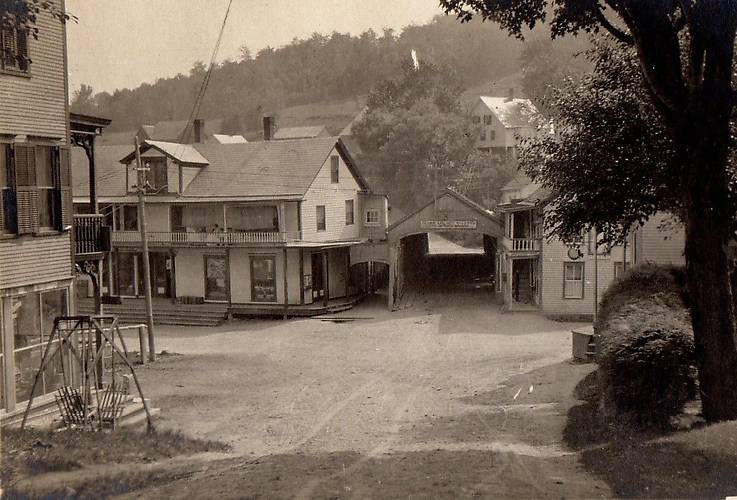 Most of the wires you see probably were for electric lighting service. Note the short 2-pin-crossarm "pole" atop the covered bridge in the centre of this image ;-)