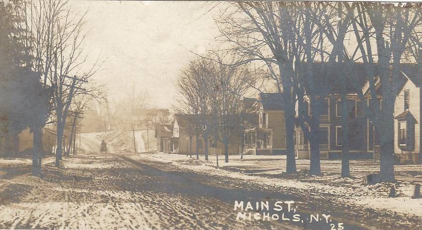 Nichols, NY c.1905, Unpaved Street, Crooked Pole Line