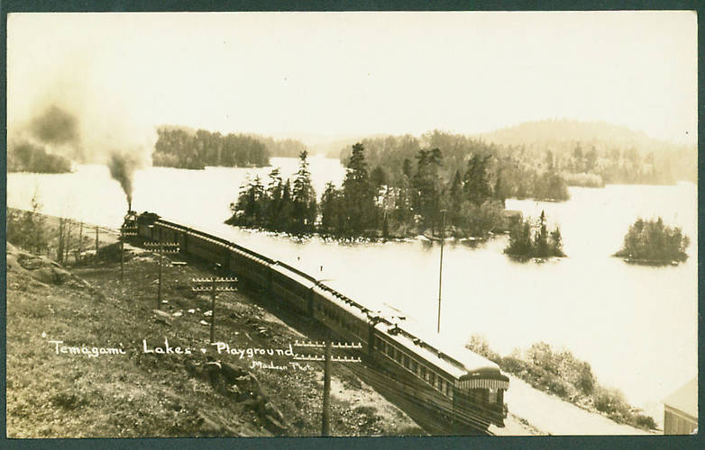 I'm not sure what rather scenic state this photo was taken in. However by the looks of the dark (cresoted?) poles, lighter colored wood crossarms and recent right-of-way clearance, the communications line seen here probably was pretty new at the time. |
