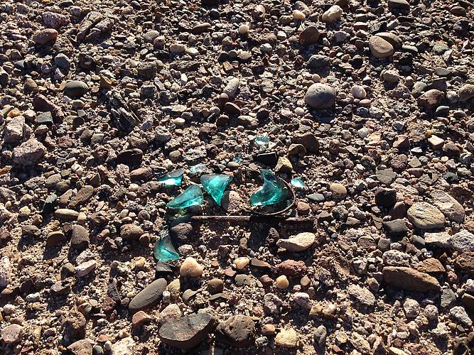 These shards were discovered by Bill Ostrander in 2001. It was a pleasant surprise when we found them undisturbed thirteen years later. We decided not to pick them up because they're one of the few remnants of the Arizona Military Telegraph still intact and should not be removed. I've also chosen not to share their coordinates for that same reason. |